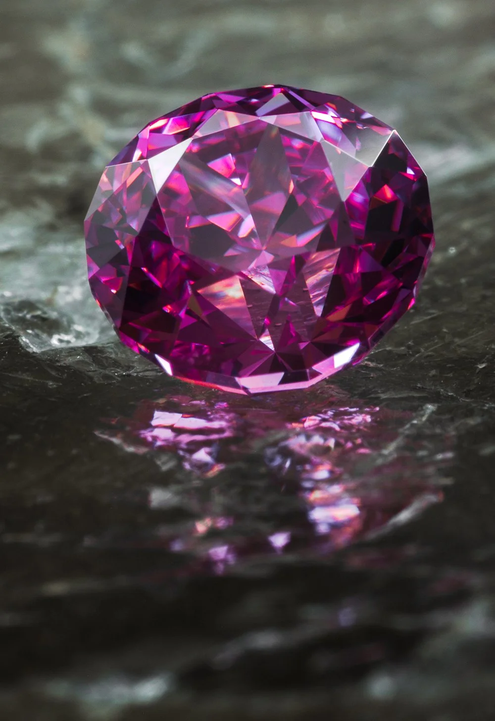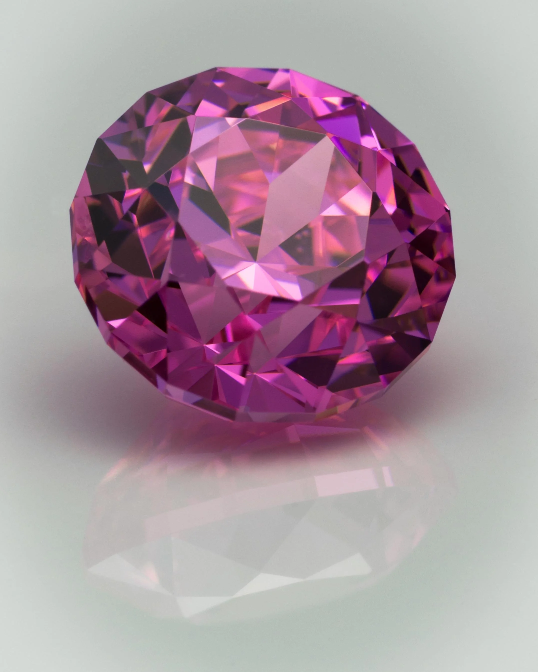 Pink "Brilliant Cut" cubic zirconia on polished quartz